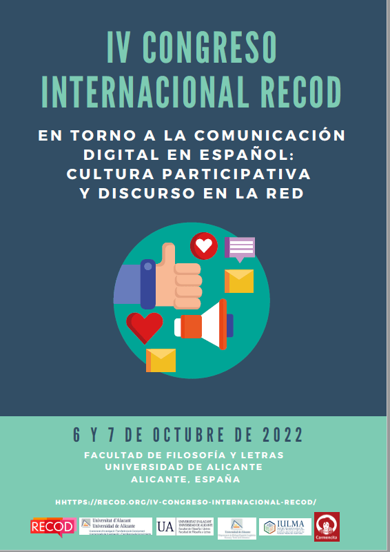 Está abierta la convocatoria para el envío de propuestas para participar de la IV Congreso Internacional “En torno a la comunicación digital en español: Cultura participativa y discurso en la red”, de la Red de Estudios sobre Comunicación Digital, que se realizará en formato híbrido (modalidad online y presencial) el 6 y 7 de octubre, en la Universidad de Alicante, España.